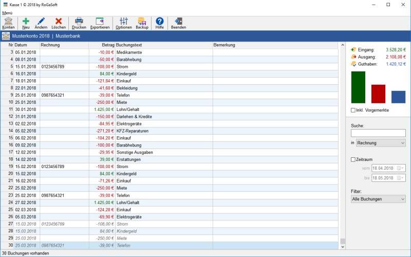 Kassenbuch für mehrere Konten